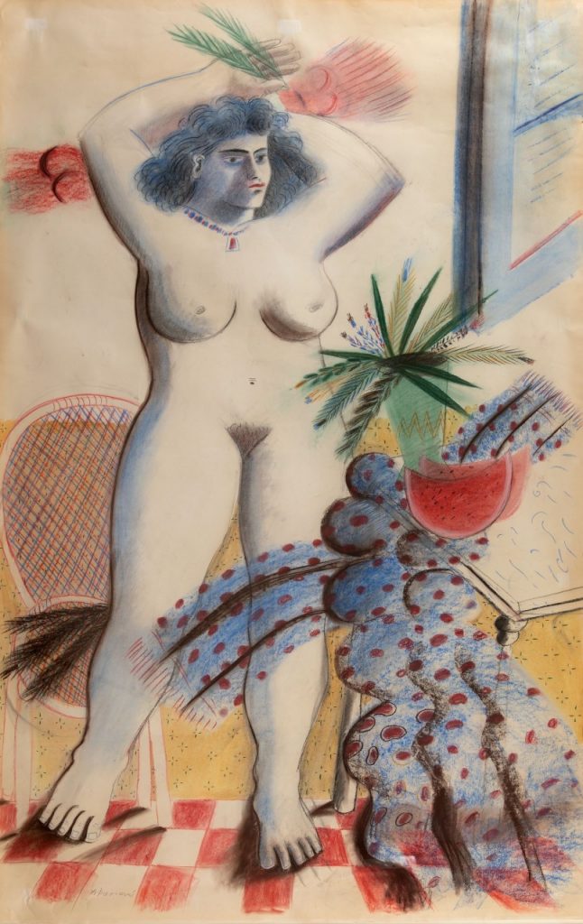 Την ομάδα των έργων με την υψηλότερη τιμή εκτίμησης συμπληρώνει το «Γυμνό με καλοκαιρινά φρούτα» του Αλέκου Φασιανού (1935-2022), επίσης με τιμή εκτίμησης από 50.000 έως 70.000 ευρώ. Η γυναικεία μορφή, μνημειώδης και ταυτόχρονα απλή στη σύλληψή της, αποπνέει μια αίσθηση διαχρονικής ελληνικότητας, σαν μαρμάρινο άγαλμα που ζωντανεύει μέσα στο φως. Ο Αλέκος Φασιανός μετατρέπει καθημερινές εικόνες και γνώριμες μορφές σε σύμβολα, αντλώντας από την αρχαία παράδοση αλλά και από τη σύγχρονη εμπειρία. Όπως είχε δηλώσει ο ίδιος, «είμαστε ίδιοι με τους αρχαίους, γιατί βλέπουμε το ίδιο φως», συμπυκνώνοντας σε αυτή τη φράση τη βαθιά συνέχεια της ελληνικής αισθητικής. Με το έργο αυτό, ο Αλέκος Φασιανός αναδεικνύεται ως ένας από τους σημαντικότερους εκφραστές της σύγχρονης ελληνικής παραστατικής ζωγραφικής, συνεχίζοντας δημιουργικά μια παράδοση που ξεκινά από τον Θεόφιλο Χατζημιχαήλ και φτάνει έως τη γενιά του 1930.