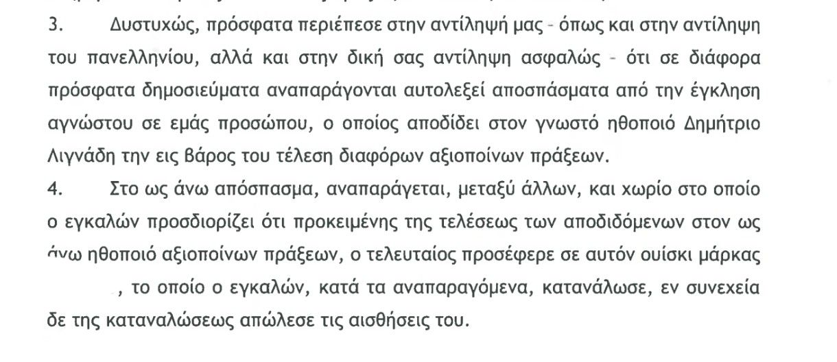 Εξώδικο από εταιρία ποτών σε κανάλια για να μην αναφέρουν το όνομα του ποτού με το οποίο νάρκωσε ένα θύμα του. Είναι το ουίσκι που ήπιε ένα από τα φερόμενα θύματα του «γνωστού σκηνοθέτη» Δημήτρη Λιγνάδη, αυτό που του… έβαλε να πιει δηλαδή, με αποτέλεσμα να ακολουθήσει νάρκωση και βιασμός. Ετσι, τουλάχιστον, γράφει η δικογραφία.
