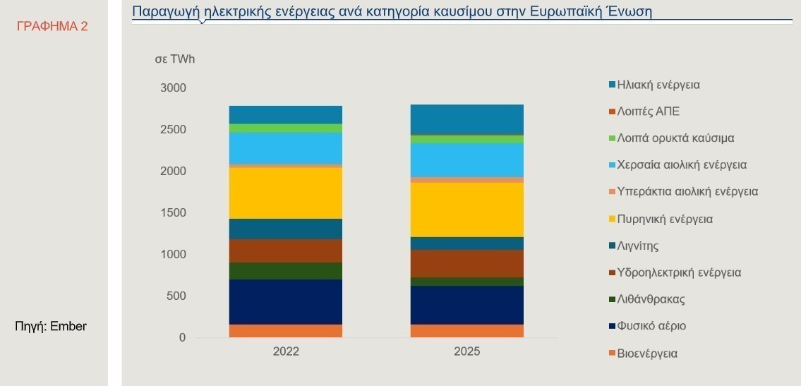 Σε μεσοπρόθεσμο ορίζοντα, η επιτάχυνση των επενδύσεων σε ανανεώσιμες πηγές ενέργειας και πυρηνική τεχνολογία αποτελεί μονόδρομο. Οι ανάγκες επενδύσεων εκτιμάται ότι θα φθάσουν τα 660 δισ. ευρώ ετησίως έως το 2030, συμπεριλαμβανομένων των έργων για μικρούς αρθρωτούς πυρηνικούς αντιδραστήρες. Ήδη, από το 2022, η Ευρώπη έχει εντείνει τις επενδύσεις στις ΑΠΕ, με το μερίδιό τους στην ηλεκτροπαραγωγή να φθάνει το 48% το 2025, ενώ η πυρηνική ενέργεια διαμορφώθηκε στο 23%. Την ίδια χρονιά, η ηλιακή και αιολική ενέργεια ξεπέρασαν για πρώτη φορά τα ορυκτά καύσιμα, καλύπτοντας το 30% της συνολικής παραγωγής.