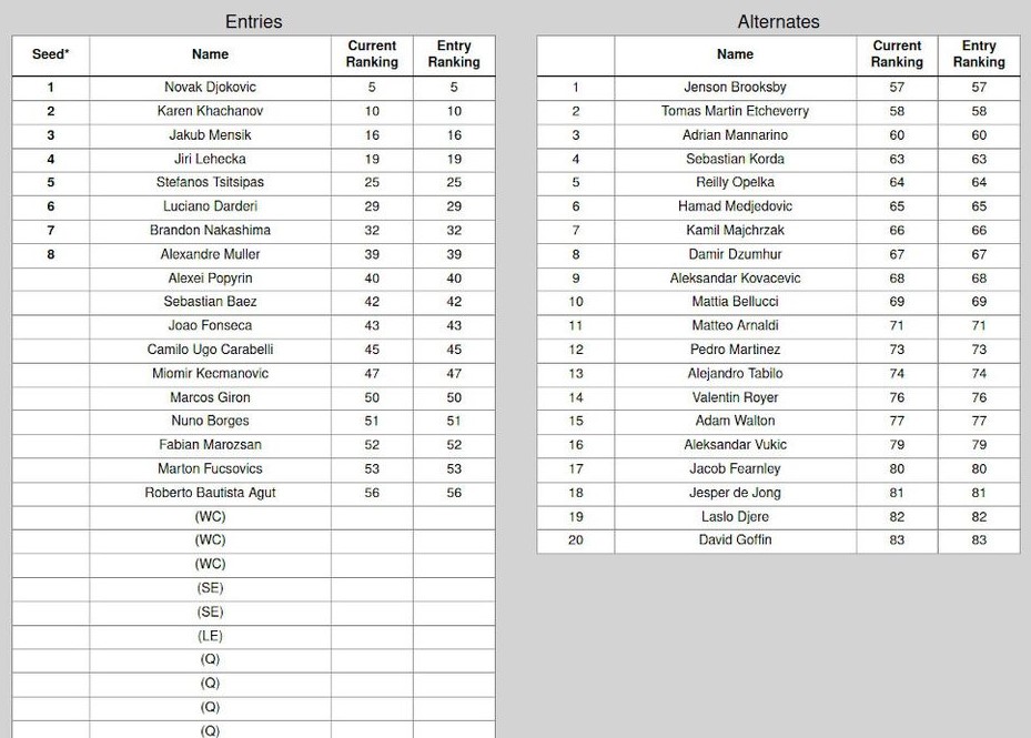 Το επίπεδο των αγώνων αναμένεται να είναι εξαιρετικά υψηλό, κάτι που αποδεικνύεται από το γεγονός ότι αθλητές όπως ο Hamad Medjedovic, ο Adrian Mannarino και ο Sebastian Korda, με βάση το τρέχον “cut”, δεν έχουν εξασφαλίσει απευθείας θέση στο κυρίως ταμπλό και βρίσκονται στη λίστα των προκριματικών.