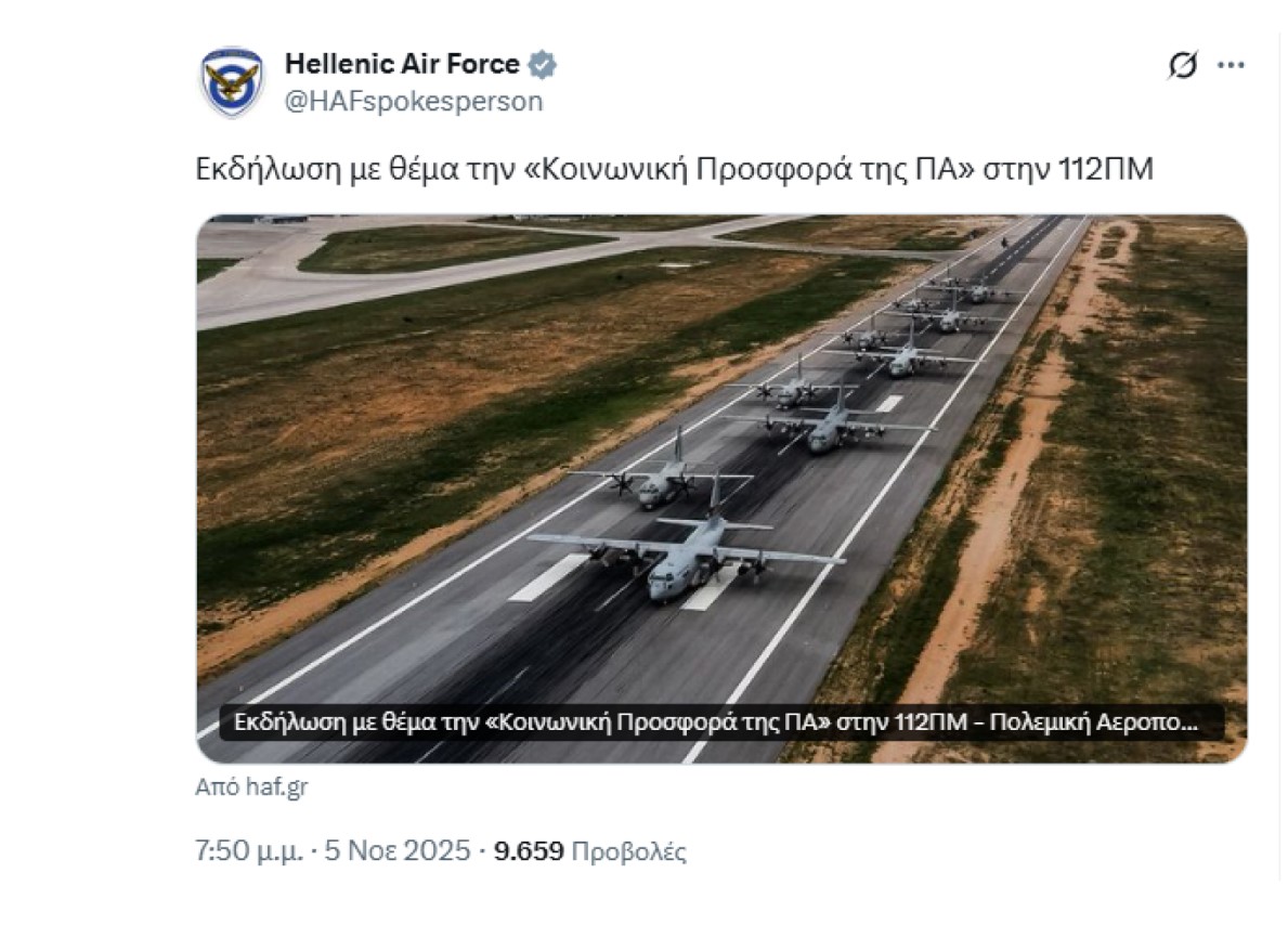 — Hellenic Air Force (@HAFspokesperson) November 13, 2025