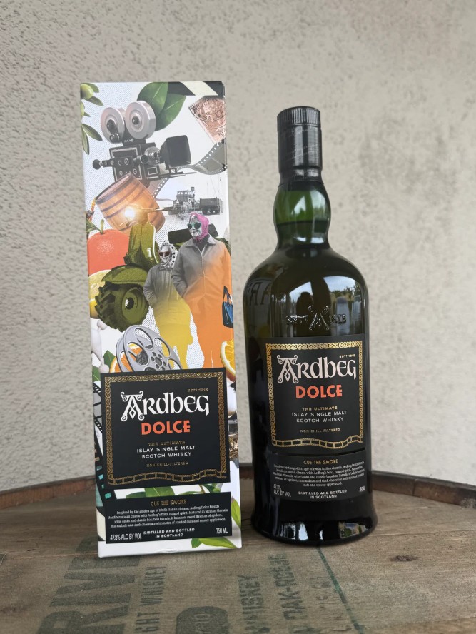 Η συσκευασία του Ardbeg Dolce είναι εμπνευσμένη από το εμβληματικό στιλ του ιταλικού κινηματογράφου της δεκαετίας του 1960. Το κουτί του ουίσκι παρουσιάζει ένα κολάζ εικόνων από το αποστακτήριο Ardbeg, αλλά όπως μια καλή ταινία, είναι γεμάτο «κρυμμένα» στοιχεία για τα μέλη της επιτροπής: οπτικές αναφορές στον κινηματογράφο και τον πολιτισμό της νότιας Ιταλίας.
