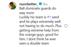 «Όλοι οι κυριαρχικοί guards κάνουν πολλά περισσότερα. Ευτυχώς η ομάδα του είναι στο νούμερο 1 και αυτός παίζει εξαιρετικά χωρίς να χρειάζεται να κάνει πολλά.