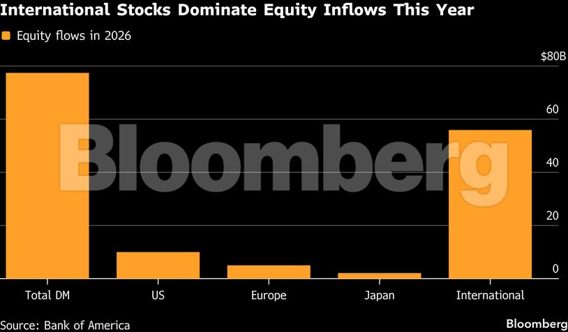 Την ίδια στιγμή, οι ροές προς τα αμερικανικά μετοχικά αμοιβαία κεφάλαια επανήλθαν, με εισροές 9,2 δισ. δολαρίων την εξεταζόμενη εβδομάδα. Αντίθετα, η Ευρώπη κατέγραψε τις πρώτες εκροές έπειτα από επτά εβδομάδες, ύψους 400 εκατ. δολαρίων, σύμφωνα με στοιχεία της EPFR Global που επικαλείται το Bloomberg.