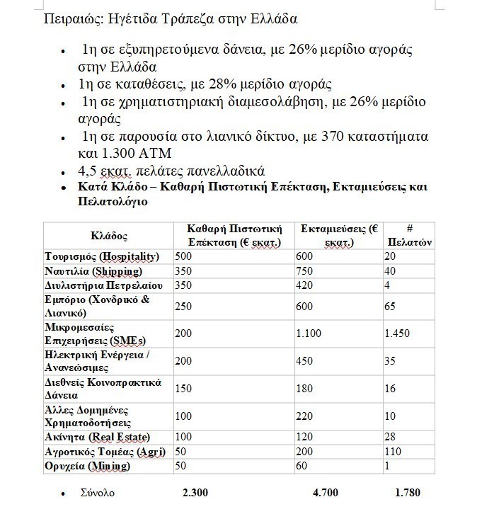Ο ίδιος μίλησε για την αύξηση της πιστωτικής επέκτασης που δεν συνοδεύεται με αντίστοιχη ωρίμανση καταθέσεων και επομένως δίδει πλεονέκτημα στην τράπεζα.