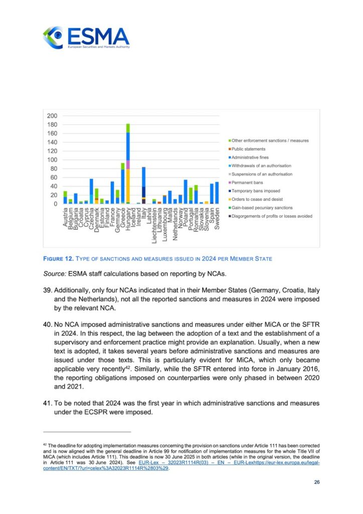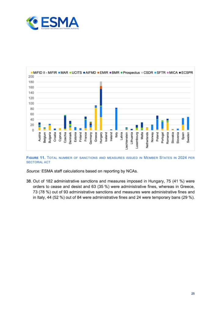 Αυτό, τουλάχιστον, υποστηρίζει η Ετήσια Έκθεση Κυρώσεων της Ευρωπαϊκής Αρχής Κινητών Αξιών και Αγορών (European Securities and Markets Authority – ESMA) για το 2024.