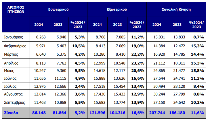 Τόσο οι πτήσεις εσωτερικού όσο και οι διεθνείς πτήσεις σημείωσαν άνοδο κατά 5,2% και 16,6% σε σχέση με το 2023.