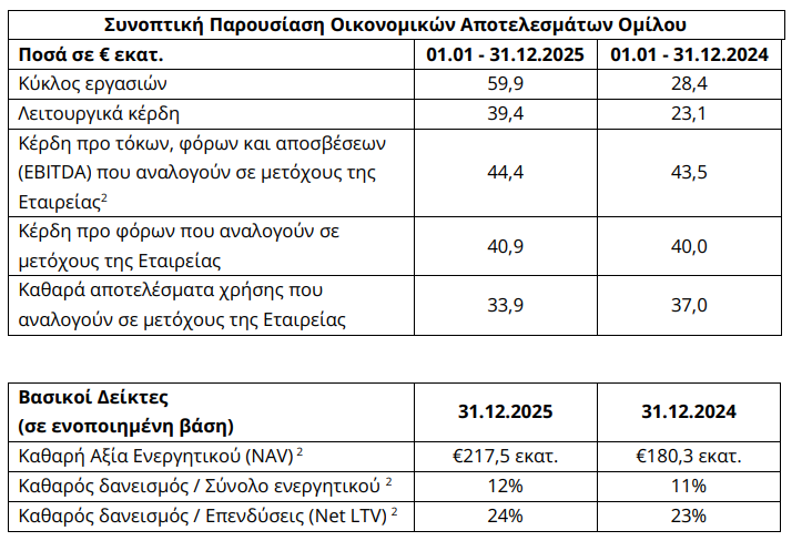 Ως αποτέλεσμα, ο Όμιλος διατήρησε και στη χρήση 2025 την ισχυρή λειτουργική του επίδοση, με τα λειτουργικά κέρδη να διαμορφώνονται σε €39,4 εκατ., έναντι €23,1 εκατ. τη χρήση 2024, ενώ τα αποτελέσματα προ φόρων μετά από δικαιώματα μειοψηφίας ανήλθαν σε €40,9 εκατ. από €40,0 εκατ. τη χρήση 2024.