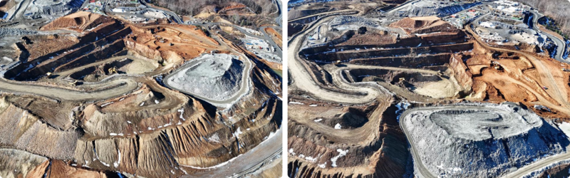 Η επιφανειακή εκμετάλλευση (open pit) έχει αυξήσει τις λειτουργίες της κατά το 4ο τρίμηνο του 2025 με τέσσερα συνεργεία να δραστηριοποιούνται νωρίτερα από τον προγραμματισμό για την κατασκευή αποθηκών μεταλλεύματος για την έναρξη λειτουργίας της μονάδας επεξεργασίας. Στο τέλος του 4ου τριμήνου του 2025, υπήρχαν περίπου 1,2 εκατομμύρια τόνοι μεταλλεύματος σε απόθεμα3 από την επιφανειακή και υπόγεια εξόρυξη, που περιείχαν περίπου 47,3 χιλιάδες ουγκιές χρυσού και 12,5 εκατομμύρια λίβρες χαλκού. Ο έλεγχος ποιότητας με γεωτρήσεις που καλύπτει το 95% της Φάσης 1 της επιφανειακής εξόρυξης ολοκληρώθηκε επιβεβαιώνοντας τα τρία πρώτα χρόνια παραγωγής.