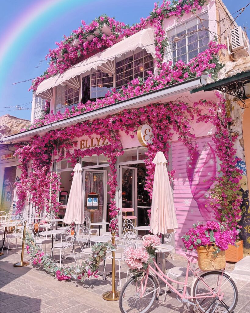 Ροζ αποχρώσεις, άνθη παντού, φως που διαχέεται απαλά μέσα από πέταλα — μια αισθητική τόσο ονειρική που μετατρέπει κάθε επίσκεψη σε σκηνή από ρομαντική ταινία.