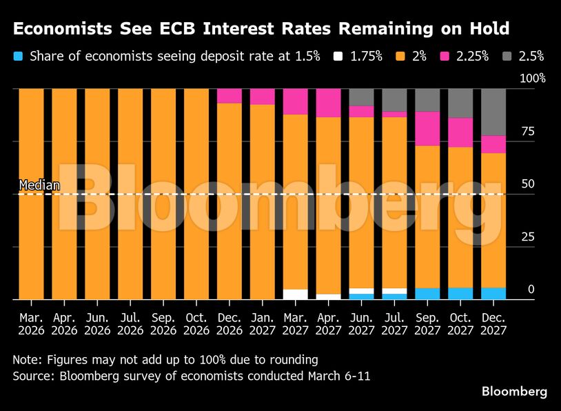 Σύμφωνα με τους αναλυτές του Bloomberg, Ντέιβιντ Πάουελ και Σιμόνα Ντέλε Τσάιε, «το βασικό μας σενάριο παραμένει ότι τα επιτόκια θα παραμείνουν αμετάβλητα φέτος, αν και τώρα αφαιρούμε τους κινδύνους πτώσης που επικρατούσαν πριν από το ενεργειακό σοκ. Μια αύξηση θα μπορούσε ακόμα να πραγματοποιηθεί φέτος αν το σοκ συνεχιστεί και οι αυξανόμενες προσδοκίες για τον πληθωρισμό δείξουν σημάδια εδραίωσης».