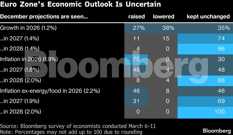 Οι οικονομολόγοι προβλέπουν ότι η EKT θα διατηρήσει τα επιτόκια αμετάβλητα, ακόμη και αν επανεμφανιστούν οι απειλές του πληθωρισμού.