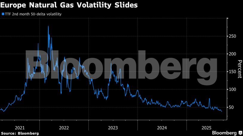Εν τω μεταξύ, η μεταβλητότητα του ευρωπαϊκού φυσικού αερίου έχει μειωθεί σε επίπεδα που είχαν παρατηρηθεί για τελευταία φορά πριν από την ενεργειακή κρίση του 2022. Αν και αυτό προσφέρει ενδεχομένως ένα πιο ελκυστικό σημείο εισόδου για τους εμπόρους που επιδιώκουν να επωφεληθούν από τις απότομες διακυμάνσεις των τιμών, οι διακυμάνσεις που έχουν πραγματοποιηθεί στα συμβόλαια μελλοντικής εκπλήρωσης έχουν μετριαστεί.