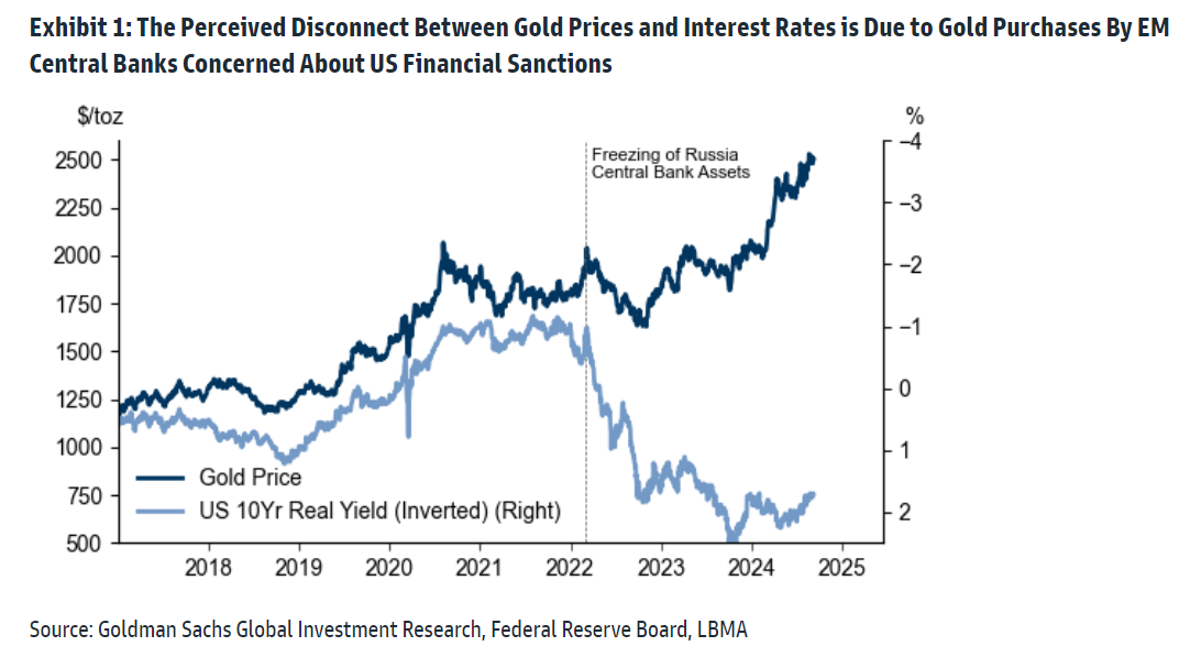 ·Πιστεύουμε ότι ο τριπλασιασμός των αγορών από τις κεντρικές τράπεζες από τα μέσα του 2022 λόγω των φόβων για τις οικονομικές κυρώσεις των ΗΠΑ και το δημόσιο χρέος των ΗΠΑ είναι διαρθρωτικός και θα συνεχιστεί,