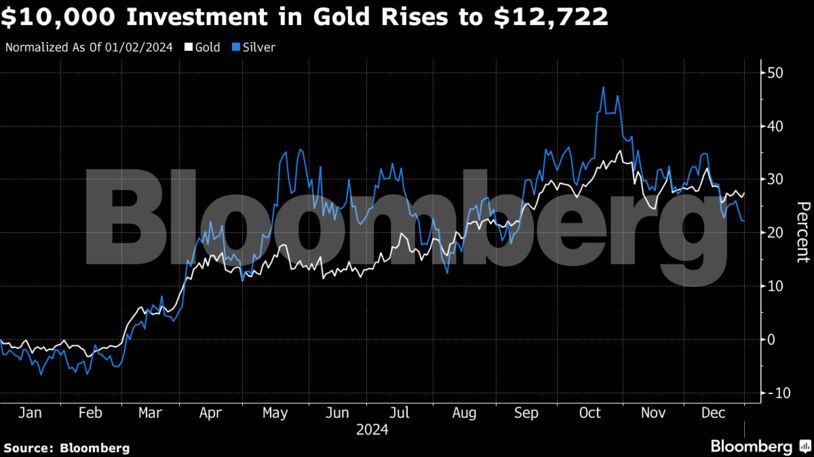 Άλλες μεγάλες επιδόσεις περιλάμβαναν το αμφιλεγόμενο κρυπτονόμισμα Bitcoin, το οποίο αυξήθηκε λίγο πάνω από 120% και ξεπέρασε για πρώτη φορά τα 100.000 δολάρια χάρη στην υποστήριξη του εκλεγμένου προέδρου Ντόναλντ Τραμπ για τα ψηφιακά περιουσιακά στοιχεία. Ο χρυσός, το πιο καθιερωμένο μέσο διατήρησης της αξίας, σημείωσε άλμα 27% – το μεγαλύτερο των τελευταίων 14 ετών – καθώς οι κεντρικές τράπεζες και άλλοι αναζήτησαν ένα αντιστάθμισμα για την πανσπερμία των γεωπολιτικών και οικονομικών απειλών.