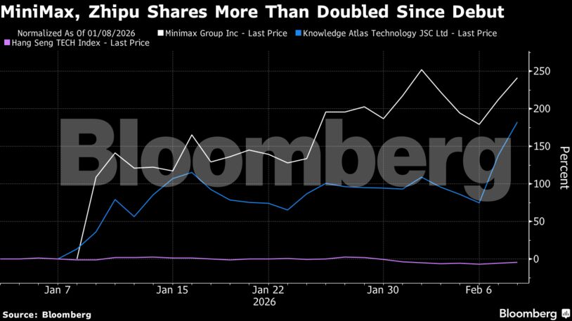 Η μετοχή της Knowledge Atlas (Zhipu) σκαρφάλωσε έως και 24% σε ιστορικό υψηλό, ενώ της MiniMax έως και 11%, μετά την έναρξη κάλυψης από αναλυτές της JPMorgan —μεταξύ των οποίων και η Ολίβια Σου— με σύσταση overweight. Και οι δύο εταιρείες εισήχθησαν στο χρηματιστήριο τον περασμένο μήνα —μαζί με τη Biren, ενώ η MetaX εισήχθη τον Δεκέμβριο— αξιοποιώντας τον ισχυρό «ούριο άνεμο» της AI στην αγορά του Χονγκ Κονγκ. Η MiniMax έχει εκτοξευθεί περίπου 230% σε λίγο πάνω από έναν μήνα, ενώ η Zhipu έχει ενισχυθεί πάνω από 170%.