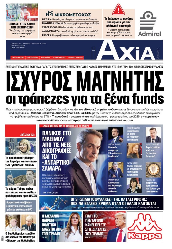 Διαβάστε στην «iAXIA», με νέο σχεδιασμό και εμφάνιση, όλο το ρεπορτάζ της εβδομάδας για την οικονομία, το χρηματιστήριο, τις τράπεζες, τις επιχειρήσεις και την πολιτική…