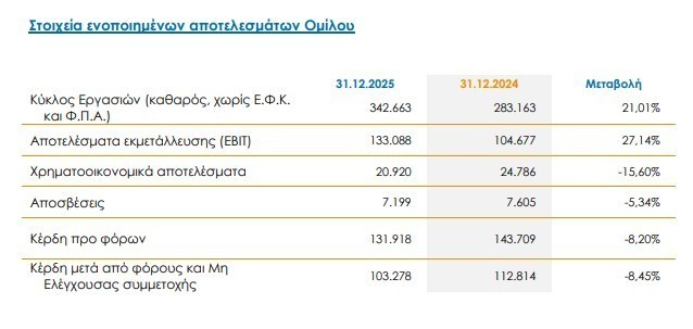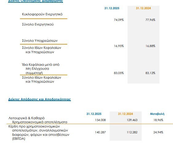 Κατά την περιγραφή των επιδόσεων του Ομίλου χρησιμοποιούνται οι κάτωθι δείκτες, που αφορούν την οικονομική διάρθρωση και την αποδοτικότητα του Ομίλου, σύμφωνα με τα ενοποιημένα στοιχεία που περιλαμβάνονται στις Χρηματοοικονομικές Καταστάσεις του Ομίλου, για την περίοδο που έληξε την 31η Δεκεμβρίου 2025.