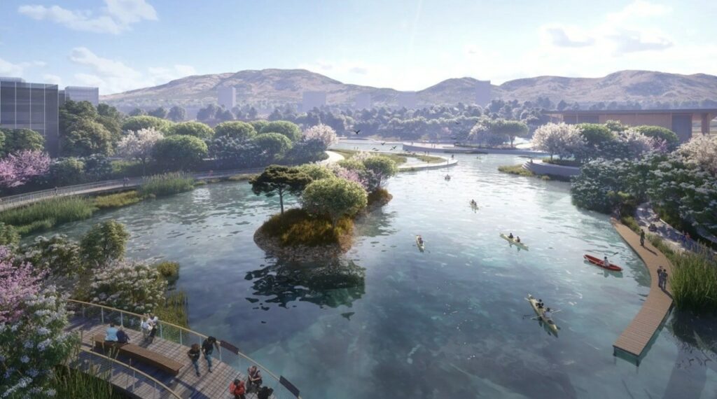 Ως προς την άρδευση: Στα αρχικά στάδια υλοποίησης του έργου και μέχρι την ολοκλήρωση της Εγκατάστασης Επεξεργασίας Λυμάτων (ΕΕΛ), οι ανάγκες για άρδευση καλύπτονται από το δίκτυο ύδρευσης της ΕΥΔΑΠ. Μετά την ολοκλήρωσή της, η ΕΕΛ θα τροφοδοτείται με ποσότητα λυμάτων ίση με τις αρδευτικές ανάγκες (Μητροπολιτικό Πάρκο, κοινόχρηστοι χώροι πρασίνου των περιοχών Πολεοδόμησης και των ανοιχτών χώρων πρασίνου των Ζωνών Ανάπτυξης), όπου μετά από κατάλληλη επεξεργασία παράγεται η απαραίτητη ποσότητα νερού άρδευσης με τα προβλεπόμενα από τη νομοθεσία ποιοτικά χαρακτηριστικά.