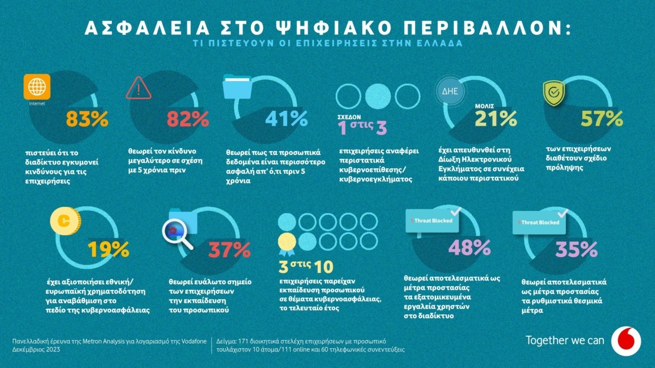 Πανελλαδική έρευνα σε επιχειρήσεις που δραστηριοποιούνται στην Ελλάδα για την ασφάλεια τους στο διαδίκτυο διενήργησε η Metron Analysis, για λογαριασμό της Vodafone Ελλάδας. Η «Έρευνα B2B για την Ασφάλεια στο Διαδίκτυο» καταγράφει την εμπειρία και τις αντιλήψεις των ελληνικών επιχειρήσεων για τις απειλές από τη χρήση του Διαδικτύου, τους βασικούς κινδύνους που αντιμετωπίζουν, καθώς και τα μέτρα προστασίας που λαμβάνουν.