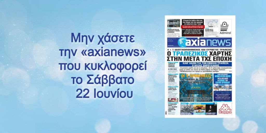 Διαβάστε στην «axianews» όλο το ρεπορτάζ της εβδομάδας για την οικονομία, το χρηματιστήριο, τις τράπεζες, τις επιχειρήσεις και την πολιτική, με πολλές αποκαλύψεις και πλούσιο παρασκήνιο.
