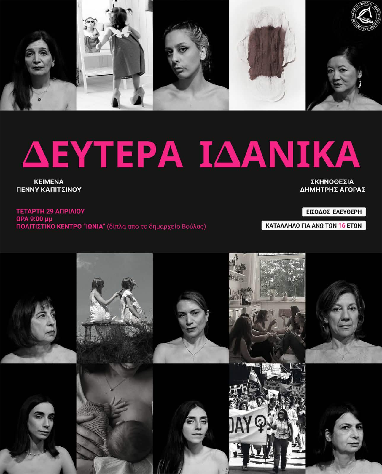 Δεν πρόκειται για μια κλασική αφήγηση με αρχή, μέση και τέλος. Είναι περισσότερο ένα μωσαϊκό στιγμών και συναισθημάτων. Μια σκηνική σύνθεση βασισμένη στα κείμενα της Πέννυς Καπιτσίνου, που ακουμπά με ειλικρίνεια τη σύγχρονη γυναικεία εμπειρία. Μέσα από διαφορετικές φωνές, ξεδιπλώνονται σκέψεις, μικρές καθημερινές αγωνίες, αλλά και εκείνες οι πιο βαθιές, που σπάνια λέγονται δυνατά.