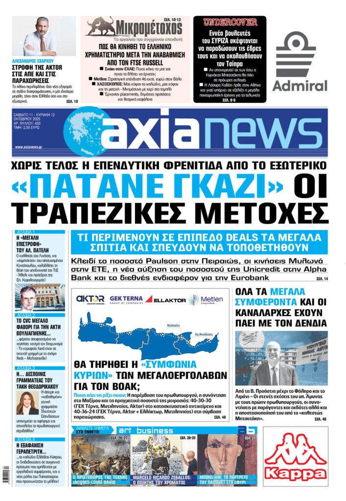 Μην χάσετε την «axianews» που κυκλοφορεί το Σάββατο 11 Οκτωβρίου