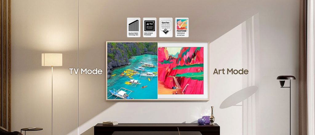 Διαθέτει ακόμη πάνελ QLED χωρίς αντανακλάσεις, ρυθμό ανανέωσης έως 144Hz ή έως 240Hz όταν η τηλεόραση συνδέεται με PC, καθώς και πρόσβαση στο Wireless One Connect box. Οι βασικές διαφορές είναι ότι η The Frame Pro πλέον κυκλοφορεί και σε μικρότερο μέγεθος 55 ιντσών (μαζί με τα μοντέλα 65, 75 και 85 ιντσών) και ότι μία από τις θύρες Micro HDMI υποστηρίζει eARC για καλύτερη ποιότητα ήχου με συνδεδεμένα soundbars.