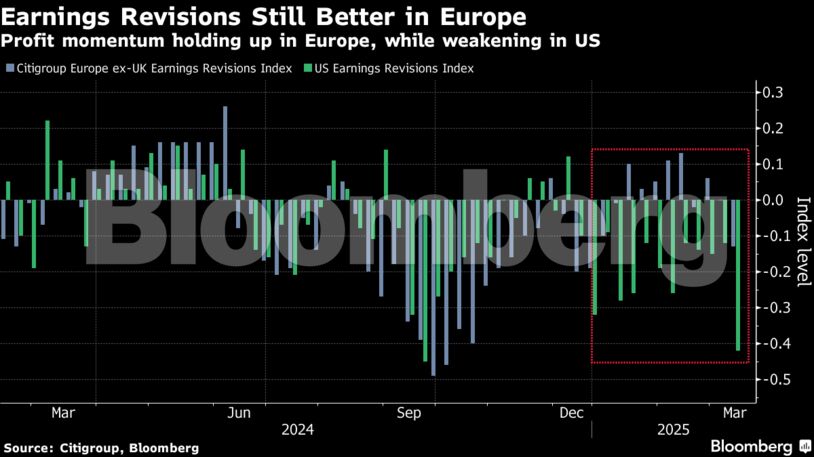 Η οικονομική δυναμική στην Ευρώπη παραμένει ισχυρή, ιδίως σε σύγκριση με τις ΗΠΑ. Οι οικονομικές εκπλήξεις της περιοχής ήταν θετικές, ενώ ένας δείκτης της Citigroup για τις αναθεωρήσεις των κερδών τα πήγε καλύτερα φέτος. Κατά συνέπεια, οι ευρωπαϊκές μετοχές έχουν αντισταθεί στη μεγάλη υποχώρηση που παρατηρήθηκε στις ΗΠΑ. Τώρα οι στρατηγικοί αναλυτές ανεβάζοντας τους στόχους είναι πιθανό να τροφοδοτήσουν την αισιοδοξία των επενδυτών.