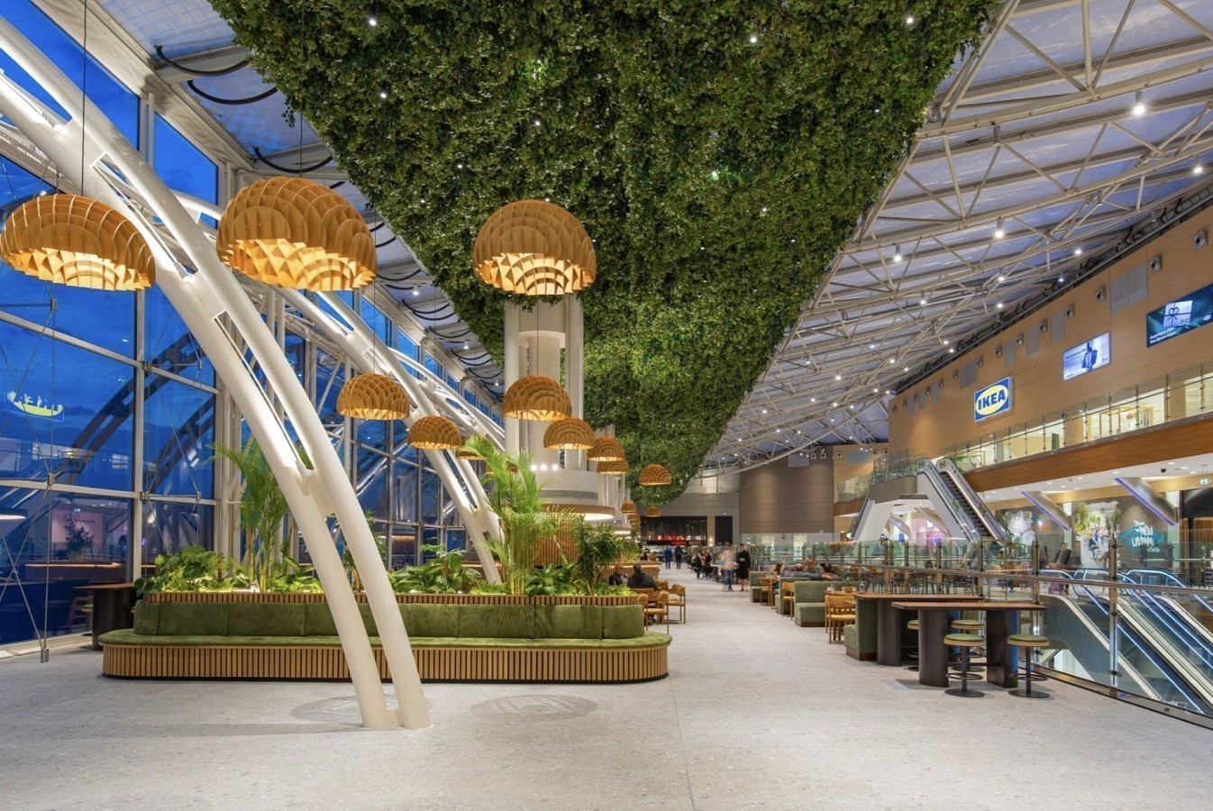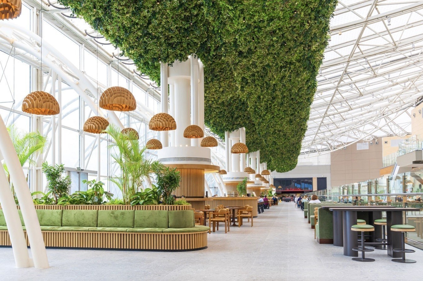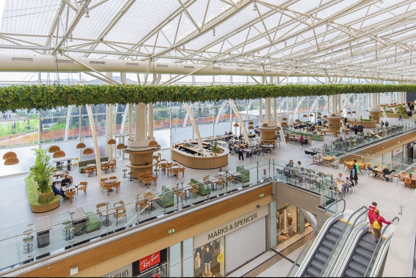 Ο χώρος θα ενισχυθεί με καντίνες αλλά και εκδηλώσεις που θα φιλοξενούνται εκεί». Πλήρως αναδιαμορφωμένος είναι και ο χώρος που περιλαμβάνει τα εστιατόρια στο επίπεδο 3 με ένα σύγχρονο, πράσινο σκηνικό.