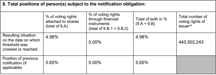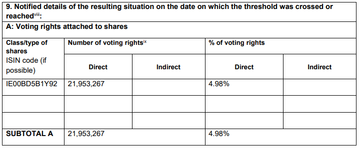 Το παραπάνω ποσοστό αντιστοιχεί σε συνολικά 21.953.267 δικαιώματα ψήφου.