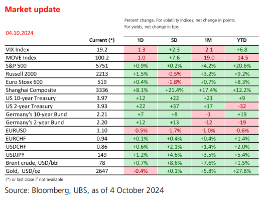Έτσι, η UBS διατηρεί την άποψη ότι το ράλι στην αγορά μετοχών εξακολουθεί να έχει γερές βάσεις. Μετά την εξασθένηση στις αρχές της περασμένης εβδομάδας, ο S&P 500 κέρδισε 0,9% την Παρασκευή μετά τα στοιχεία για τις θέσεις εργασίας, οδηγώντας τον δείκτη στην τέταρτη συνεχόμενη εβδομαδιαία άνοδό του.